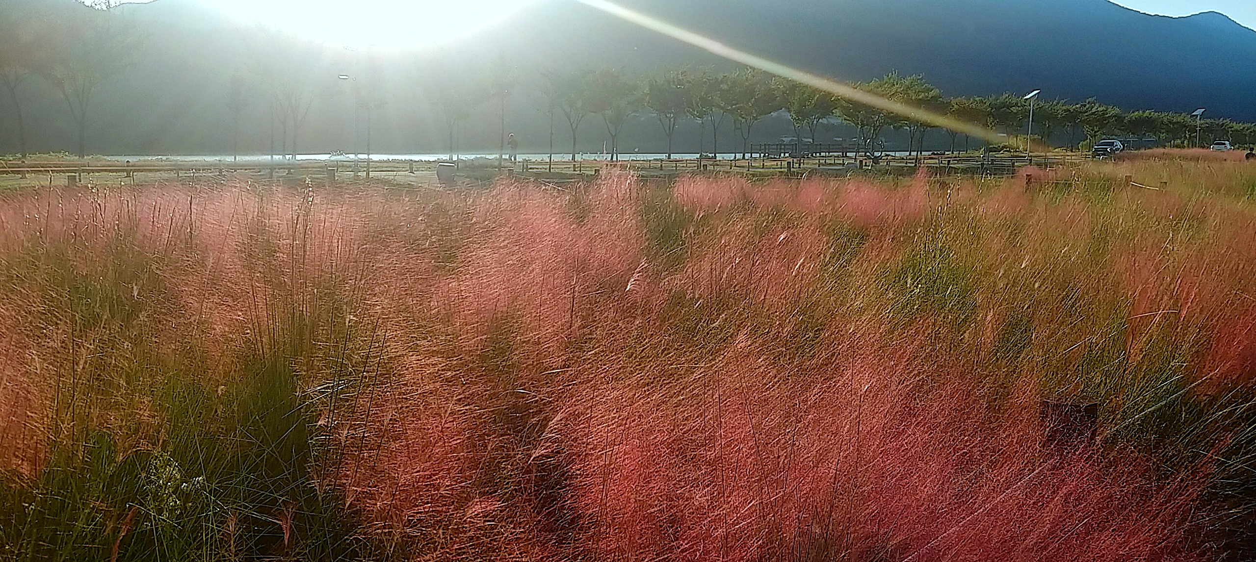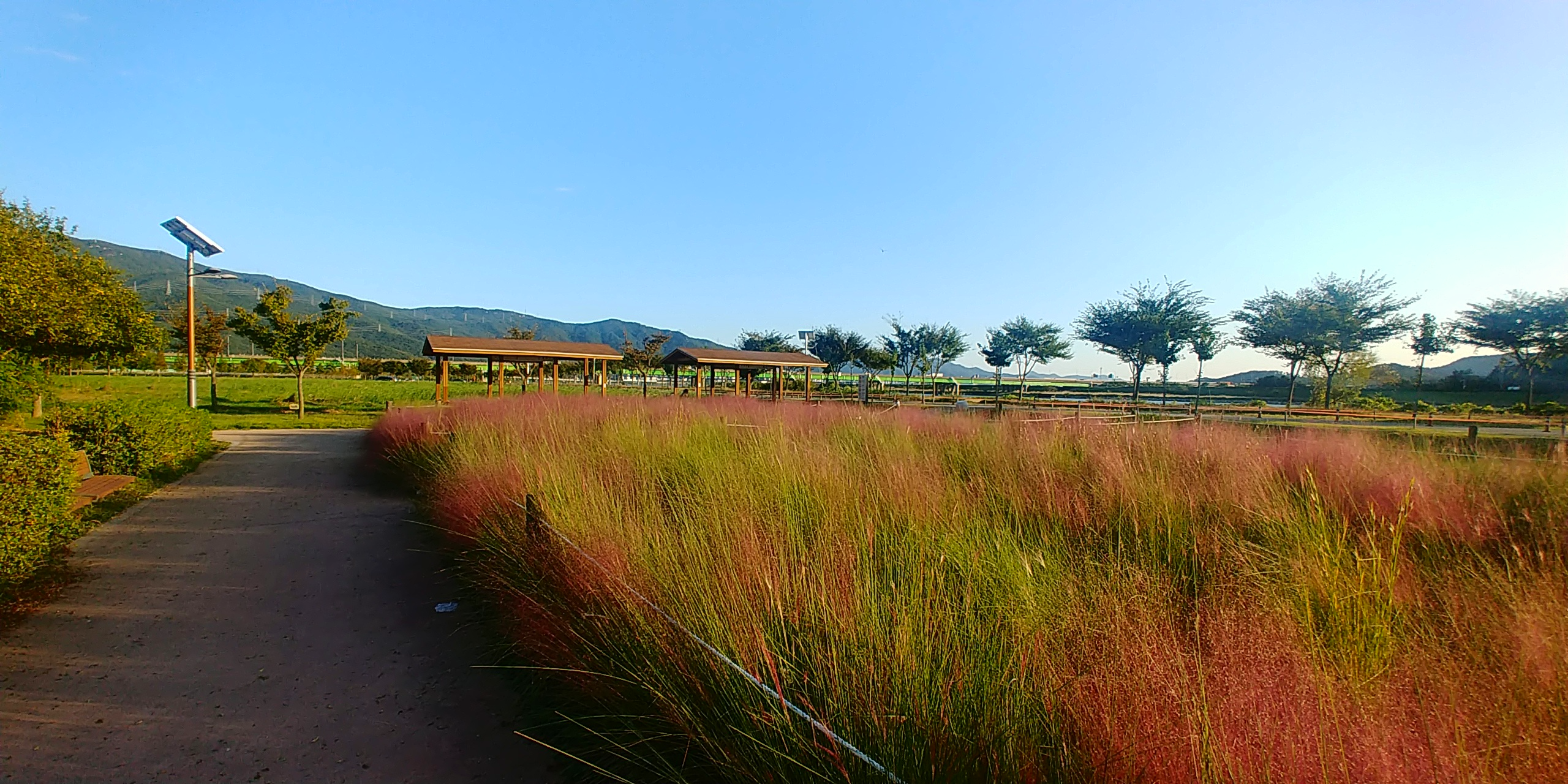 예전 기사를 보면 2급 유해종으로 한국 생태계를 침식할 우려가 있는 외래종이라 평가하고 있지만 씨앗만으로의 번식이 힘들기 때문에 통제하지 못할 가능성은 적으므로 현재 관상용으로 이용되고 있습니다. 황산공원도 곳곳에 핑크뮬리를 심고 있는데요. 아쉬운 점이라면 엄청 넓은 장소가 아니라서 한눈에 들어온다는 것인데, 눈으로 다 담을 수 없을 만큼의 넓은 곳에서 임팩트 있는 순간을 느끼고 싶다는 한 가지 바람이 생깁니다.